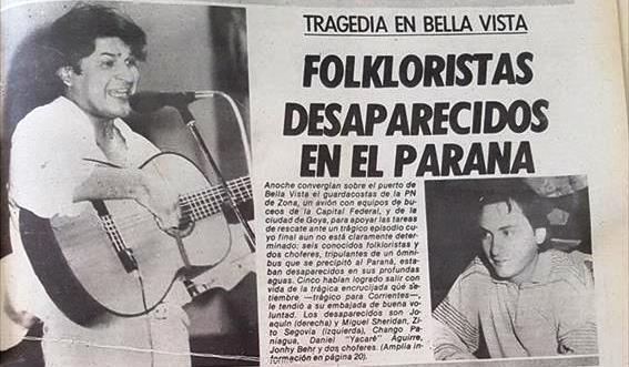El 8 de septiembre siempre será recordado como uno de los días más tristes para el chamamé. En Bella Vista fallecieron grandes valores de la renovación de la música autóctona, quienes cayeron al río Paraná tras una falla en el colectivo que los trasladaba en medio de una gira por distintas localidades de la región. En aquella fecha fatídica también murieron los dos choferes.