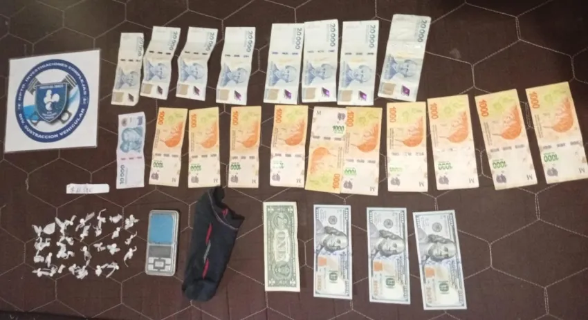 Un operativo por un robo a mano armada derivó en el hallazgo de 38 bochitas de cocaína, casi $270 mil pesos, 301 dólares y la detención de un joven con pedido de captura vigente por otra causa.