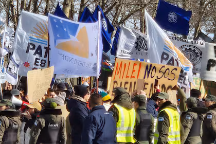 La comitiva decidió sacar al presidente de territorio fueguino luego de que manifestantes de LLA quedaran a metros de la marcha convocada en contra del Presidente. En un primer momento, un cordón policial de la infantería de Gendarmería dividía a ambas facciones, pero una vez retirado Milei, las fuerzas de seguridad también se fueron.