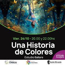 El viernes 24 de octubre, el escenario del Guido recibirá al Estudio Ballare con “Una historia de colores”, que se presentará en doble función, a las 20 y 22 horas. Se trata de una obra mágica y educativa ambientada en el Reino Coloria, donde los colores cobran vida y representan las emociones, la naturaleza y la creatividad. Las entradas anticipadas tienen un costo de $13.000 y en puerta $16.000, disponibles en boletería del teatro, también de miércoles a sábado de 17 a 21.