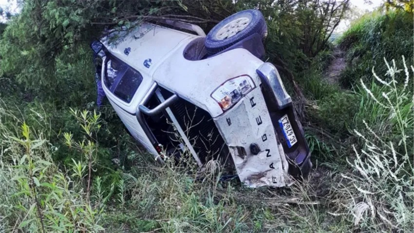 Tras el volantazo, el chofer perdió el control del vehículo, despistó y terminó volcando al atravesar la banquina.
