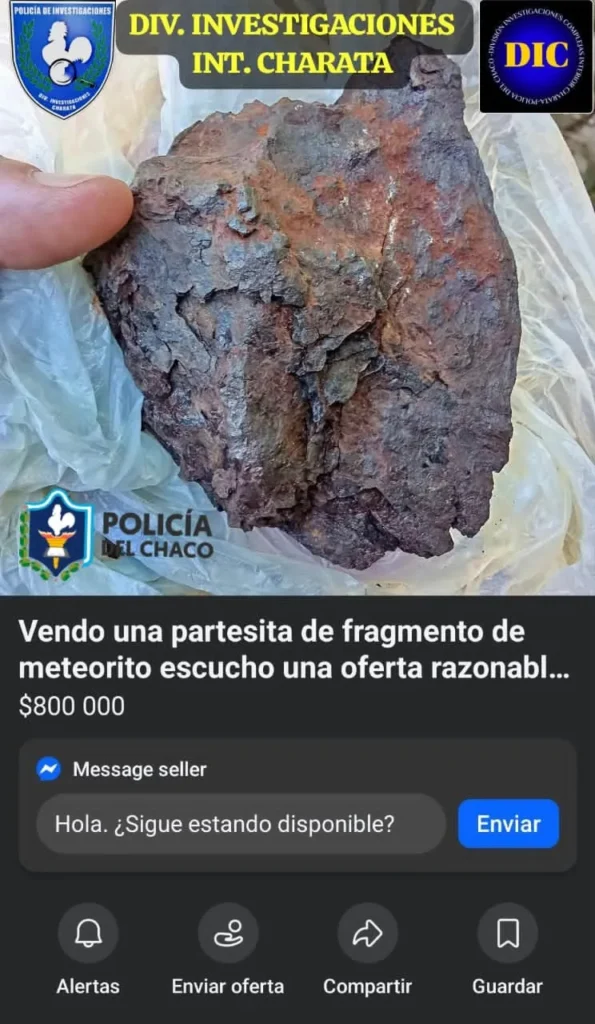 Un operativo policial realizado en la ciudad de Charata culminó con la detención de un hombre y el secuestro de un trozo de meteorito que era ofrecido a la venta a través de redes sociales.