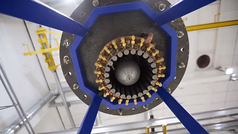 Hoy en día, Rosatom construye una infraestructura experimental a gran escala en su sitio de Troitsk, que incluye una cámara de vacío de 4 metros de diámetro y 14 metros de longitud. Esta cámara equipada con sistemas avanzados de bombeo de vacío y gestión térmica permite simular las condiciones del espacio para probar el motor y asegurar su funcionamiento.