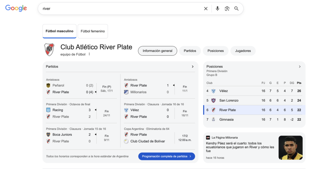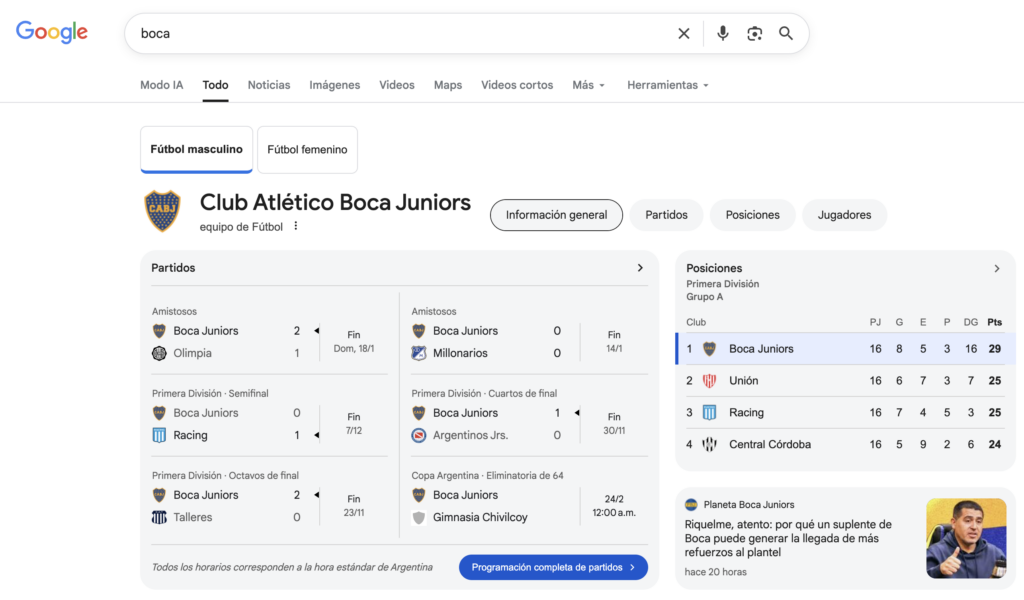 Lejos de tratarse de una falla técnica, la explicación es más profunda y estructural. Google no produce los datos deportivos que muestra en su buscador. Los compra a proveedores especializados que, a su vez, negocian con ligas, federaciones y dueños de derechos.